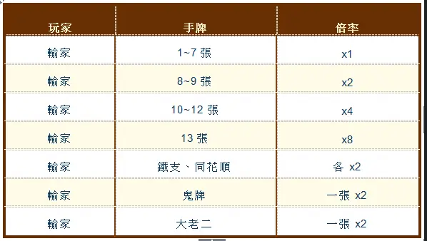 在快盈国际体育大老二中,牌型大小决定了对局胜负,以下是从小到大的牌型排序: